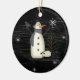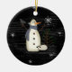 This Primitive Snowman & Snowflakes Ornament features my mouse drawn primitive snowman with sheep, crow and snowflakes on a black wood look background.