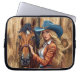 A Beautiful Rustic Brown Wooden Western Style Laptop Sleeve With Horse And Cowgirl Rider