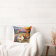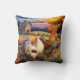 Pillow featuring a colourful fine art painting of a rooster and chicken in a country scene with a farm. A cheerful addition to a living space and a lovely personalised gift.