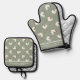 Country Roosters Pattern Sage Personalised Oven Mitt & Pot Holder Set