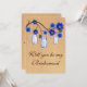Planning a wedding? You need your friends to hold your hand, help you organise, and make you look perfect on your special day. Popping the question is easy with this will you be my bridesmaid card. Personalise the card by changing the text in the fields provided. You can change font style, size, and colour, paper type and style.