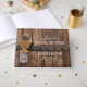 This guest book is perfect for any rustic country themed bridal shower. The design features a bouquet of wild lavender flowers, wrapped in burlap and standing in an elegant mason jar. The design has a wonderful rich wood background which is simply perfect for any barn or woodland celebration and is complete with editable wording. Easily customise this design with your special event wording and be sure to include the matching items for that very special finishing touch.