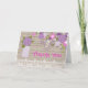Country Rustic Mason Jar Thank You Card with Green and Purple Mason Jars and flowers hanging from branch on Wood background.