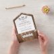 This all in one wedding invitation is perfect for your special day. It includes not only the invitation for your guests, but also an easy tear-off section for a RSVP card, including a choice of menu selection. The best part about this all in one invitation is that there is no need for envelopes as the invitation neatly folds up and glue dots are included to ensure they stay closed in the mail. Each line of example text can be easily changed in the "personalise this template" section, or click to customise further to change the font colours, styles, layout and to remove or add more lines of text. If you need any help with changing the design, please contact us and we will be happy to help.