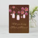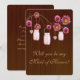 Every bride's perfect day includes her friends. Who do you trust to give a speech and perform duties like helping you choose bridesmaids' dresses so your wedding plan goes off without a hitch? Whether it's your responsible sister, cousin, niece, or your best friend, this "Will You Be My Maid of Honour" invitation is a fun way to ask. Personalise the card by changing the text in the fields provided. You can change font style, size, and colour, paper type and style.