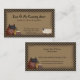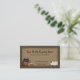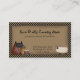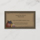 A very primitive country business card featuring a burgundy (red) Saltbox house grouping with pineapple, grubby candle and wooly sheep all surrounded by a primitive checked border. Very primitive country with warm primitive colour palette of tan, burgundy, mustard yellow, and black. A lovely business card for any crafter, country business owner or for anyone who loves country, primitives or folk art.