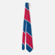 You'll look great in this blue and red-striped tie featuring thin, white stripes.