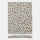This springtime kitchen towel features hand-drawn ladybugs dancing across a sweet light sage gingham pattern background, with the customisable text "Hello, Spring!"