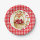 Spruce up your outdoor BBQ's or other family events with this pretty red gingham paper plate. This plate features a country style red and white gingham pattern with a watercolor illustration of vintage style harvest basket of apples. A unique design that you will love.