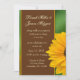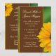 Soft deep yellow gold sunflower with dark brown cocoa accent bar and green background. Font includes both a fun decorative script and an easy to read text for visual interest. This invitaiton is a fresh breath of country air ... showcasing the green environmental theme with country fresh sunflowers. Showcase your invitations in style!