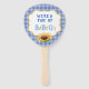 Country Sunflowers Blue Gingham Check BabyQ Hand Fan