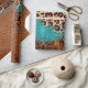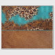 This design features faux leather elements with turquoise marble and leopard print with brown faux leather.