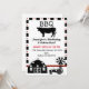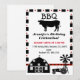 Get ready for an exciting and unforgettable barbecue birthday party with this black and white invitation! This invitation features a charming farm scene complete with a cow, barn, and tractor, adding a rustic touch to your celebration.