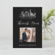 Country Western Barn Wedding Thank You Card. This is a photo western barn thank you card. It features a barn at the top and a photo of the lovely newly weds. Thank you is written in an elegant script calligraphy type while the barn conveys the theme of the wedding which iwas a relaxing fun time wedding with plenty of dancing. Show you gratitude to the guests who attended your wedding with this very specail thank you.