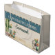 Create a surprise party for the birthday girl that she will never forget with this Country Western Cactus Boots Personalised Large Gift Bag! Country Cactus Boots Happy Birthday Gift Bag! With cactus, boots, a wagon wheel and an elegant and fun theme for a 16th, 21st, 30th, 40th. 50th or any year birthday party, bridal shower or special event for a cowgirl! The teal and tan colours with pops of coral flowers are perfect for a cowgirl boot invite or rustic bridal shower too! Personalise the text to read whatever you like. Message us for more customisation!