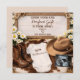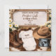 This editable template features a charming cowboy or cowgirl aesthetic with miniature boots, a western hat, daisy flowers, and a beautiful wooden sign featuring the scripture James 1:17: "Every good and perfect gift is from above."