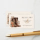 Complete your wedding stationery with these elegant registry and honeymoon fund cards, designed to complement your modern Western theme. Featuring embroidered neutral flowers and charming cowboy boots, they blend rustic charm with timeless elegance. Printed on premium textured cardstock, these cards provide a stylish way to share your registry details or honeymoon fund information. Customize them with your preferred wording or website links, making it easy for guests to contribute in a meaningful way.