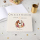 Capture the essence of your love story with this Modern Guestbook. This beautifully designed guestbook. Featuring an elegant design of horses embracing within a heart-shaped colourful floral arrangement, this collection symbolises love, harmony, and unity—perfect for a country-western wedding with rustic charm. Personalise it with your names, and let your guests leave their heartfelt messages, creating a cherished keepsake of your special day.