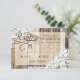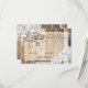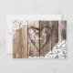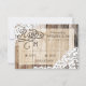 White lace over aged wood planks rustic country western wedding RSVP card design.