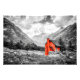 Black and White Minimalist Countryside Landscape with an orange brick farmhouse Creative Partial Colour Photography