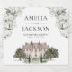This design features a gorgeous countryside manor adorned with white floral and greenery.