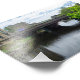 A picturesque and active scene featuring County Bridge spanning the River Calder in Sowerby Bridge, West Yorkshire. The historic bridge, with its robust stone and metal structure, connects the bustling townscape on the right with the lush, green hillside on the left, which also shows signs of infrastructure including power lines and a distant viaduct. In the foreground, the River Calder flows past, The scene is bathed in clear daylight under a bright sky, highlighting the mix of natural beauty, historical architecture, and recreational activity characteristic of this vibrant Pennine town. This image can be edited and transferred to multiple products of your choosing.