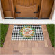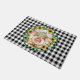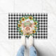 A County Doormat In A Black And White Check With A Cute Farmhouse Pig Circled In Sunflowers