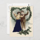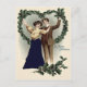 Time to celebrate the holidays. This vintage Christmas print depicts couple standing inside a heart made of holly.