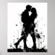 Young Couple embraced in a Kiss, Black and White Silhouette