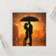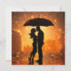 couple in love shadow stands in the rain on a golden background with an umbrella