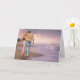 Couple in Love Walking on Beach into the Sunset. One in a series of at least seven designs of a couple in love on the beach with the waves lapping the shore, and a beautiful sunset in the cloudy sky. The image of the plain beach scene, without the couple, available on a postage stamp to match these cards.