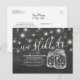 Elegant Lettering Script and Vintage Couple Mason Jars and String Lights on Black Chalkboard Background.