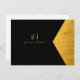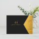 A modern minimalist gold monogram with gold script names and serif initials on black and an elegant gold foil accent shape. The reverse side of the note card is solid white blank.Simple elegance for newlywed couples or established couples.
