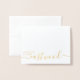 A delicate elegant gold foil couple's name monogram in vintage sans serif type, contrasted with a handwritten style script font. Elegant wedding stationery folded notecard for newlyweds or longtime spouses. Blending vintage and modern styles. Order in larger quantities for greater savings. Choose from gold or silver foil type finish.