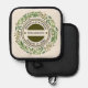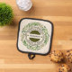 Discover a distinctive pot holder adorned with an elegant, chic antique dark and light forest green coloured botanical laurel wreath design, offering space to personalise with your couple's names and monogrammed last name. Add your family's establishment date to create a piece as unique as your shared history. This attractive, decorative, and stylish design is perfect for the home baker or professional chef.
