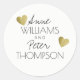 couple names with romantic love hearts, white classic round sticker