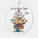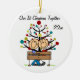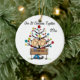 A pretty round ceramic keepsake ornament features a couple's first Christmas together! Easily add your choice of text and date to current year on this cute stick figure couple with Christmas tree design ornament. Makes a great gift idea!