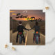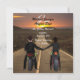 This unique Save the Date invitation features beautiful sunset scenery with a boy and girl couple on motorcycles holding hands. The couple has brown hair. Other hair colour options are available upon request! Perfect for a biker couple! Easily customise this Save the Date with all of the details for your wedding.