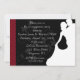 Stylish invitation with light floral and heart flourish on black background, red and black polka dot side border and white silhouette of bride and groom. Perfect for engagement parties, rehearsal dinners or showers. Invitations are easy to customise and include envelopes and choice of paper.Graphics©http://www.delightful-doodles.com/