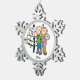 Pretty snowflake shaped ornament features a stick figure couple with a baby girl in a pink blanket and a pretty decorated Christmas tree. You can easily change the date to the current year.