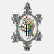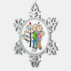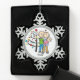 Pretty snowflake shaped ornament features a stick figure couple with a baby girl in a pink blanket and a pretty decorated Christmas tree. You can easily change the date to the current year.