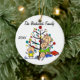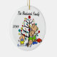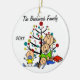 A pretty round ceramic keepsake Christmas holiday ornament features a stick figure family including a dad, mum, girl, toddler boy, and baby boy in front of a decorated Christmas tree with areas you can customise with your family name and the current year! This cute holiday keepsake ornament makes a great gift for the young family to commemorate a special year!