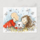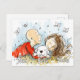 This personalised postcard offers a cute illustration of a bald man, a white puppy and a brunette woman. This is a cute design to send "we miss you" or "we love you" messages to your beloved ones.