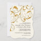 NOTE: This is a flat printed image, there are no jewels, raised layers or gold metallic elements. COLOR PALETTE: soft creamy white with faux gold metallic glitter look DESIGN COLLECTION: Matching Couple's Bridal Shower invite. Inspired by Old Hollywood and her heyday glam era, this wedding invitation set is perfect for elegant, sophisticated, modern wedding celebrations. A classic, beautiful swirling leaf damask style pattern has been graphically designed to look like a silver edged gold glittery embroidered lace design with a golden buckle that has a diamond border over faux glitter. A contemporary typography layout for your invite wording and information updates this vintage retro design. A gorgeous, unique and pretty design for the most discriminating bride.