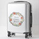 Handwriting script style personalised couple's names and event inside of a watercolor painted, round wreath of blush pink peonies and white roses with contrasting deep burgundy flowers and berry clusters over green leaf foliage. Create wall stickers to function as signage at your event such as: dessert table, gift table and favours. A complete, mix and match set of elements are available. Copyright, Audrey Jeanne Roberts.