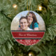 Couples 1st christmas photo ornament customisable with your own photo, names and date in elegant red, black and white classic floral damask pattern. A stylish way to decorate your christmas tree or home for the holidays. The perfect way to remember your first christmas together as a couple.