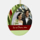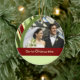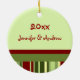 Couples 1st christmas photo ornament customisable with your own photo, names and date in festive red, yellow and green stripes pattern. A stylish way to decorate your christmas tree or home for the holidays. The perfect way to remember your first christmas together as a couple.