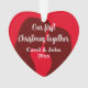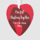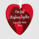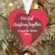 Couple's first Christmas together romantic photo Ornament. Romantic xmas tree decoration for couple, newlyweds, boyfriend and girlfriend, husband and wife, spouse, newly weds, honeymooners, bride and groom, lovers etc. Bright red love symbol with script typography. Heart shape design with white ribbon for hanging it up. Don't forget to kiss under the mistletoe. Merry Christmas and Happy Holidays! Custom decor with personalised season's greeting or wishes. Upload your own picture on the back.