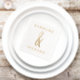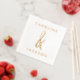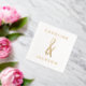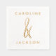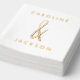 Elegant gold foiled wedding party napkins featuring a hand-drawn ampersand between the couple's names in a modern font.