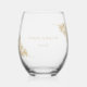 Couple's Names Date Hand Drawn Gold Roses Wedding Stemless Wine Glass